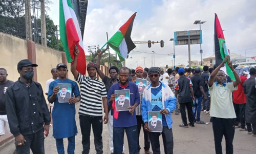 The protest, which remained largely peaceful, saw dozens of IMN supporters marching through the Maryland axis of Lagos, carrying Iranian flags, placards and banners condemning the “targeted killing” and expressing solidarity with Iran and global Shiite communities.